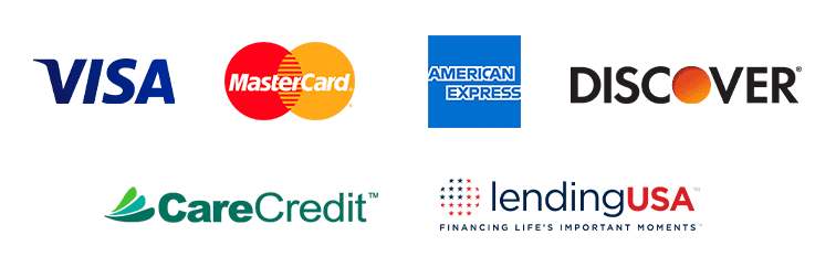 We accept most major credit cards, Apple Pay, Care Credit and Lending USA