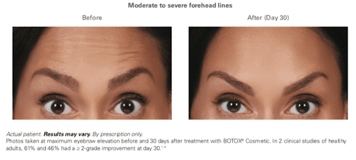 Arguably the grandfather of cosmetic injectables, Botox contains botulinum toxin type A, which is approved by the FDA to temporarily make moderate to severe frown lines, crow’s feet, and forehead lines look better in adults.